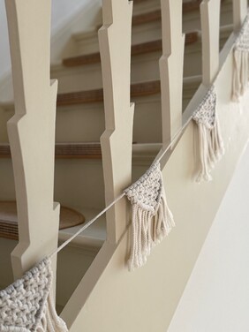Tipp: Wenn man die Grundknoten einmal einstudiert hat, kann man sich easy eigenständig an weitere Makramee Projekte machen oder einfach das Erlernte reproduzieren.
