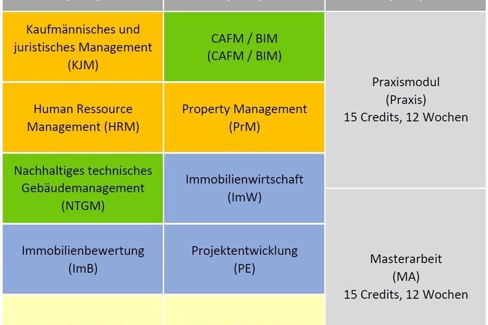 Der konsekutive Masterstudiengang Facility Management und Immobilienwirtschaft (M.Sc.) an der Jade Hochschule in Oldenburg verbindet die Fachschwerpunkte Facility Management und Immobilienwirtschaft mit einem integrativen Studienbereich. Im Schwerpunkt Facility Management stehen nachhaltiges technisches Gebäudemanagement sowie digitales Information Management mit BIM und CAFM im Fokus. Der Bereich Immobilienwirtschaft vermittelt zentrale Kompetenzen in Immobilienbewertung, Projektentwicklung, Finanzierung und Impact Investing und qualifiziert damit für anspruchsvolle Aufgaben in der Immobilienbranche. Für Absolvent_innen des Masterstudiengangs bieten sich in allen Bereichen des Immobilienmanagements vielfältige, interessante Tätigkeitsfelder.