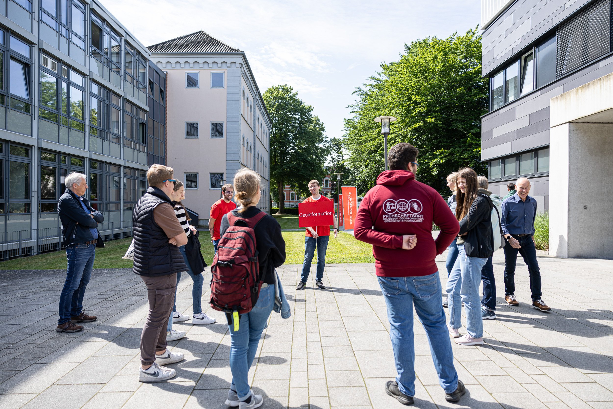 Wir nehmen euch mit auf einen Rundgang über den Campus! Entdeckt mit uns zusammen die Räumlichkeiten der Abteilung Geoinformation. Besichtigt die Gebäude, Hörsäle und Labore, in denen ihr künftig studieren werdet. Verschafft euch außerdem einen umfassenden Überblick über weitere zentrale Einrichtungen, sodass ihr zu Beginn eures Studiums bestens informiert seid!