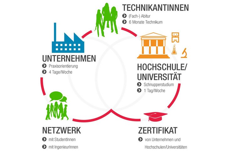 - Zum Abschluss erhalten die Technikantinnen eine Praktikumsbescheinigung ihres Unternehmens und ein Zertifikat der Jade Hochschule. Wenn Du dich nach dem Technikum für ein Studium an der Jade Hochschule entscheidest, kannst du abgelegte Prüfung und das Praktikum anrechnen.