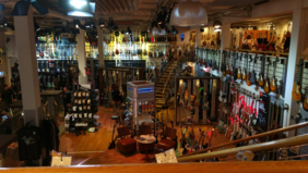 Zur gleichen Zeit fuhr eine kleine Gruppe musikbegeisterter Studierender nach Treppendorf, einem überschaubaren Dorf, das auch Thomann-City genannt wird, da Thomann dort sein Lager aufgeschlagen hat und das Dorf zu einem Großteil aus Grundstücken des Händlers besteht. Einmal im Geschäft angekommen, verging die begrenzte Zeit über die etlichen Etagen wie im Flug. Ein Höhepunkt der verschiedenen Show-Rooms war dabei die Gitarrenhalle, welche auch im Bild zu sehen ist. Neben vielen schönen (aber leider auch teuren) Gitarren waren in diesem Raum vermutlich mehr Personen zu finden als im restlichen Dorf, welche an jeder Ecke eine Gitarre ausprobierten und sich für ihr Lieblingsmodell entschieden. Auch bei den Studierenden gab es einige, die das Haus nicht ohne neues Instrument verlassen konnten.