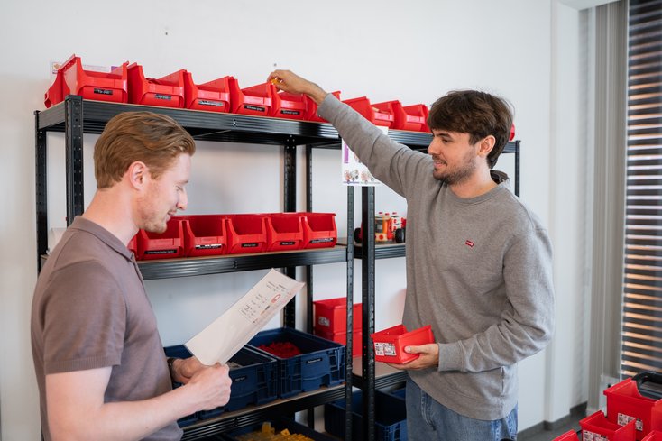 Im Logistiklabor steht unseren Studierenden ein Lager zur Verfügung. Dort können Sie Logistikprozesse durchspielen, verschiedene Kommissionier-Methoden kennenlernen und Optimierungspotenziale erkennen. Gefüllt ist das Lager mit 30 Bausätzen eines Spielzeug-LKW, das ebenfalls in den Vorlesungen zu Produktionsprozessen und Qualitätsmanagement verwendet wird. Studierende lernen hier die tatsächlichen logistischen Tätigkeiten in einem Lager und in einer Produktion kennen und können ihr theoretisches Wissen praktisch anwenden. der Fabrikplanung im Sinne der Prozessoptimierung und Produktion.