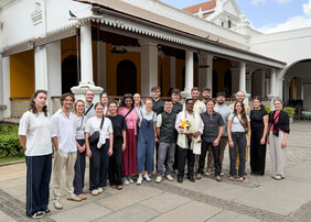 Im Rahmen des Wahlpflichtkurses „Tropical Architecture“ erhielten die Studierenden der Bachelor- und Masterstudiengänge Architektur und Urban Design die Möglichkeit, praxisnah an spezifischen Fragestellungen des Planens und Bauens in tropischen Klimazonen zu arbeiten. Vor Ort analysierten, skizzierten und diskutierten sie die architektonischen Fallbeispiele in Bangalore und Umgebung gemeinsam mit den Architekten Prof. Vasanth Bhat und Sunil Kumar, die wertvolle fachliche Impulse einbrachten und die Studierenden anleiteten. Als Vertreter des Design Hub India, einer Organisation, die für die Vermittlung von Architektur, Kultur und internationalem Austausch steht, begleiteten sie die Gruppe vor Ort. Dadurch erhielten die Studierenden umfassende Einblicke in die Besonderheiten tropischer Architektur, konnten die besichtigten Bauwerke gezielt einordnen und in einen fachlichen Kontext setzen. Ein besonders eindrucksvolles Beispiel dafür war der Besuch des Wadiyar Centre for Architecture in Mysore, dessen innovative Campus-Architektur offene Raumgefüge, leichte Bauweisen und fließende Übergänge zwischen Innen- und Außenräumen verbindet. Durch die fachliche Einführung der beiden indischen Kollegen verstanden und erlebten die Studierenden die besonderen klimatischen Anpassungen und gestalterischen Lösungen.