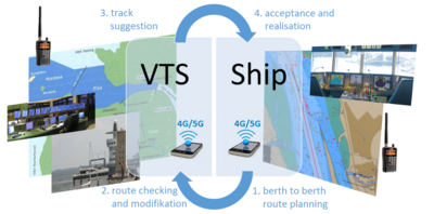 So kann das zu entwickelnde System im regulären Bordbetrieb eingesetzt werden. Die Revierzentralen erhalten per Funk/WiFi Kenntnis vom Fahrweg des Schiffes. Im Versuchsaufbau wird es möglich, dass der diensthabende Nautiker der Revierzentrale mit Kenntnis der Manövrierdaten Routen-Modifikationen vornimmt, diese zurück an das Schiff als Vorschlag sendet. Nun können auf der Brücke Lotse oder Kapitän entscheiden, ob sie die Änderungen akzeptieren oder nicht. Die geänderte Wegplanung kann dann direkt auf den Autopiloten geschaltet werden. Entsprechend wird das Lagebild wieder synchronisiert